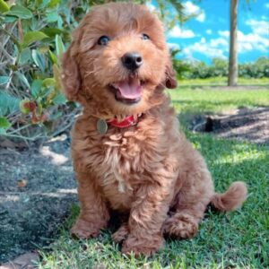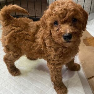 Our Golden Doodle puppies boast a soft, wavy to curly coat that requires regular grooming but is often considered hypoallergenic, making them suitable for individuals with allergies. They have expressive eyes, a friendly smile, and a playful demeanor. Their temperament is characterized by loyalty, intelligence, and a gentle disposition, making them excellent with children and other pets.